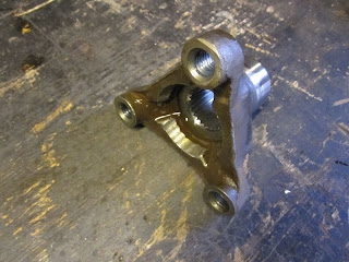 I might be able get one from Bob, but first, I need to check if it will fit, so I need to check the dimensions of the splined part of the flange on the gearbox shaft. For that I need to remove the flange from my gearbox, but it has a very odd nut and not very accessible.
